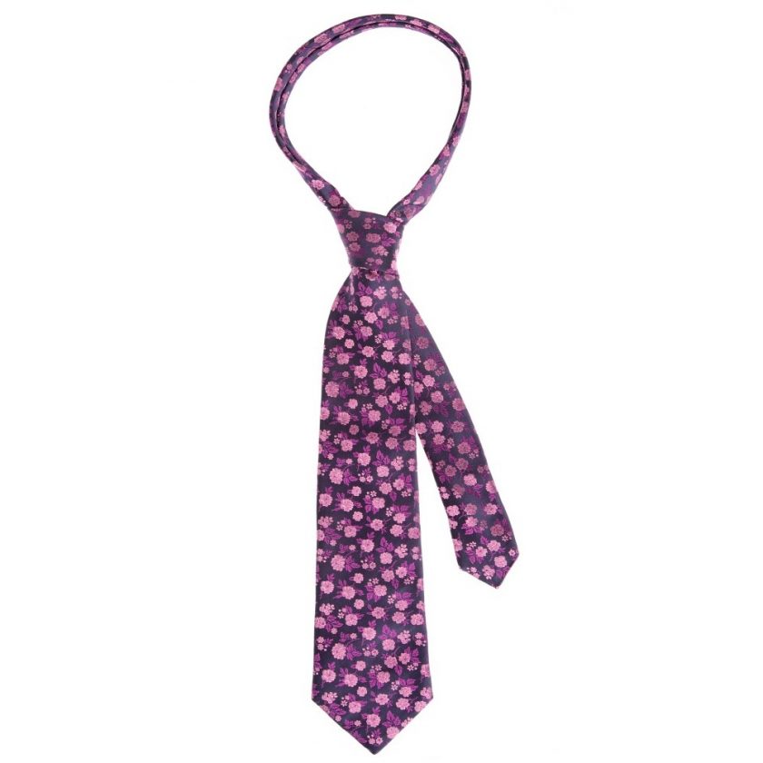Prima pagină Accesorii Cravate Cravată neagră cu model floral în nuanțe de roz