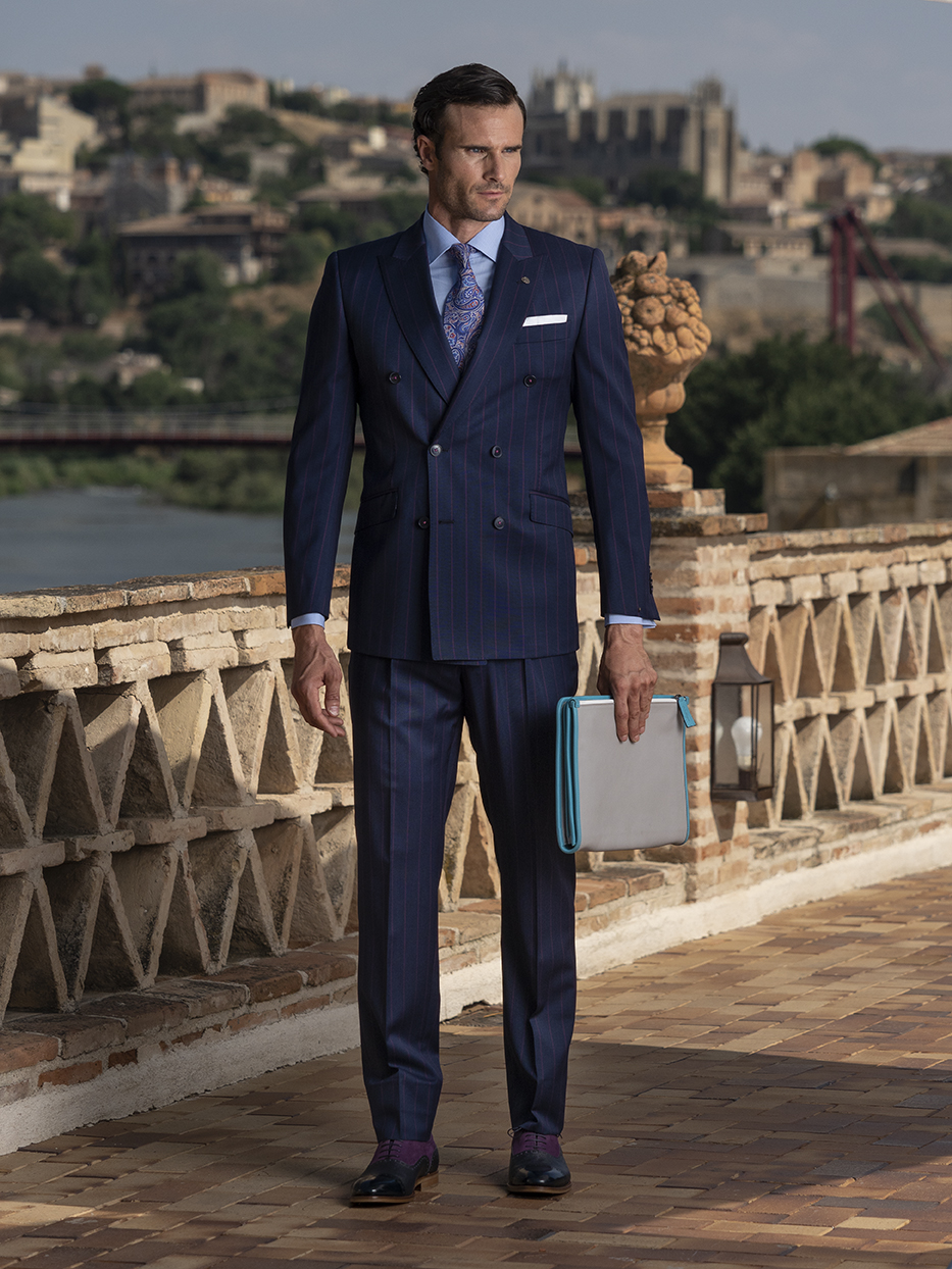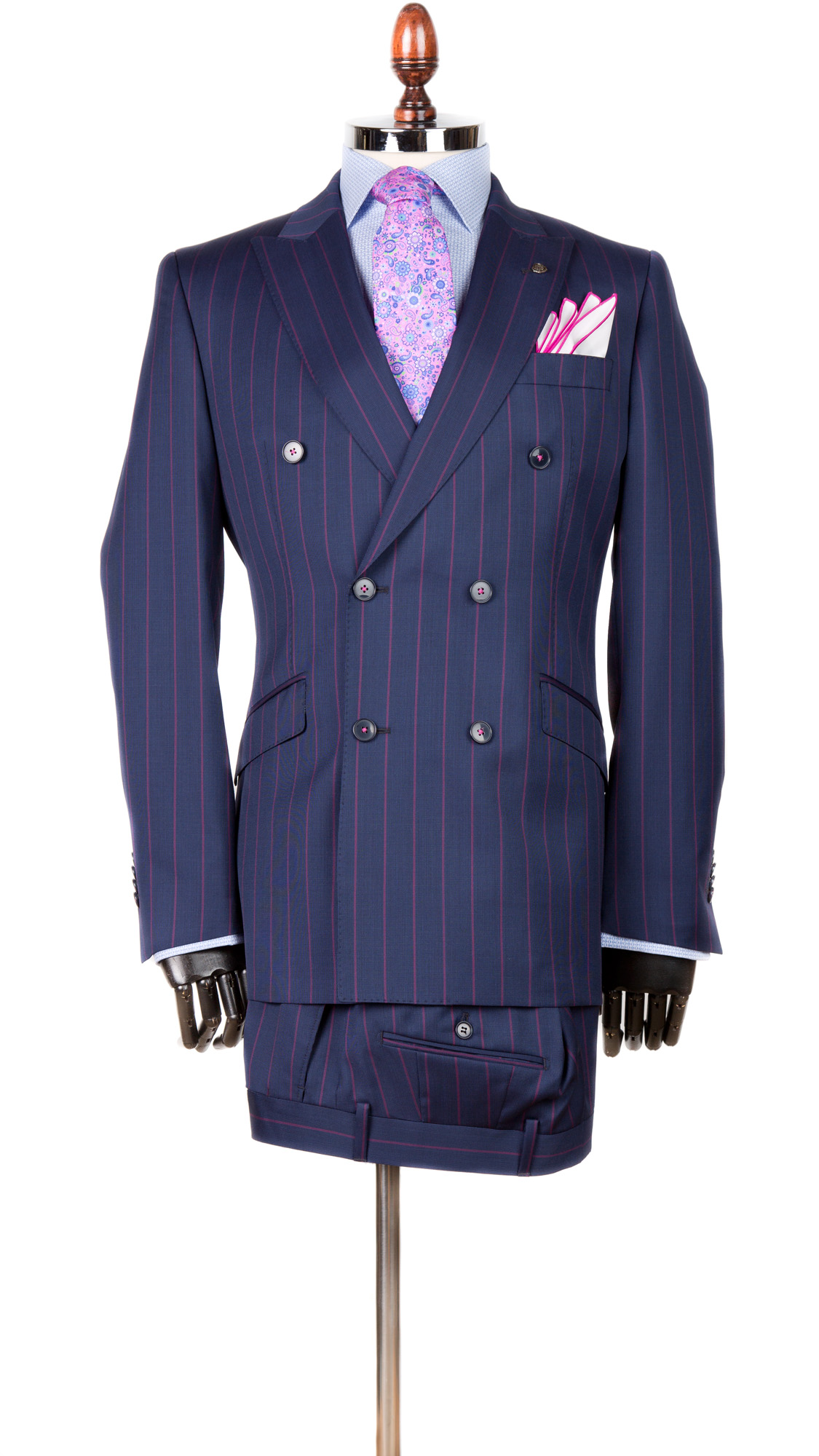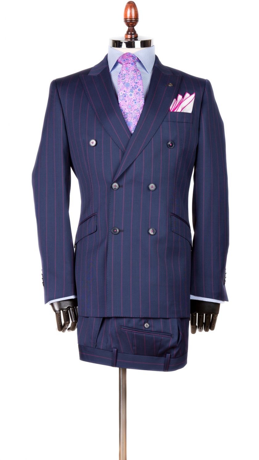 Costum business în două rânduri de nasturi, negru cu dungi vișinii
