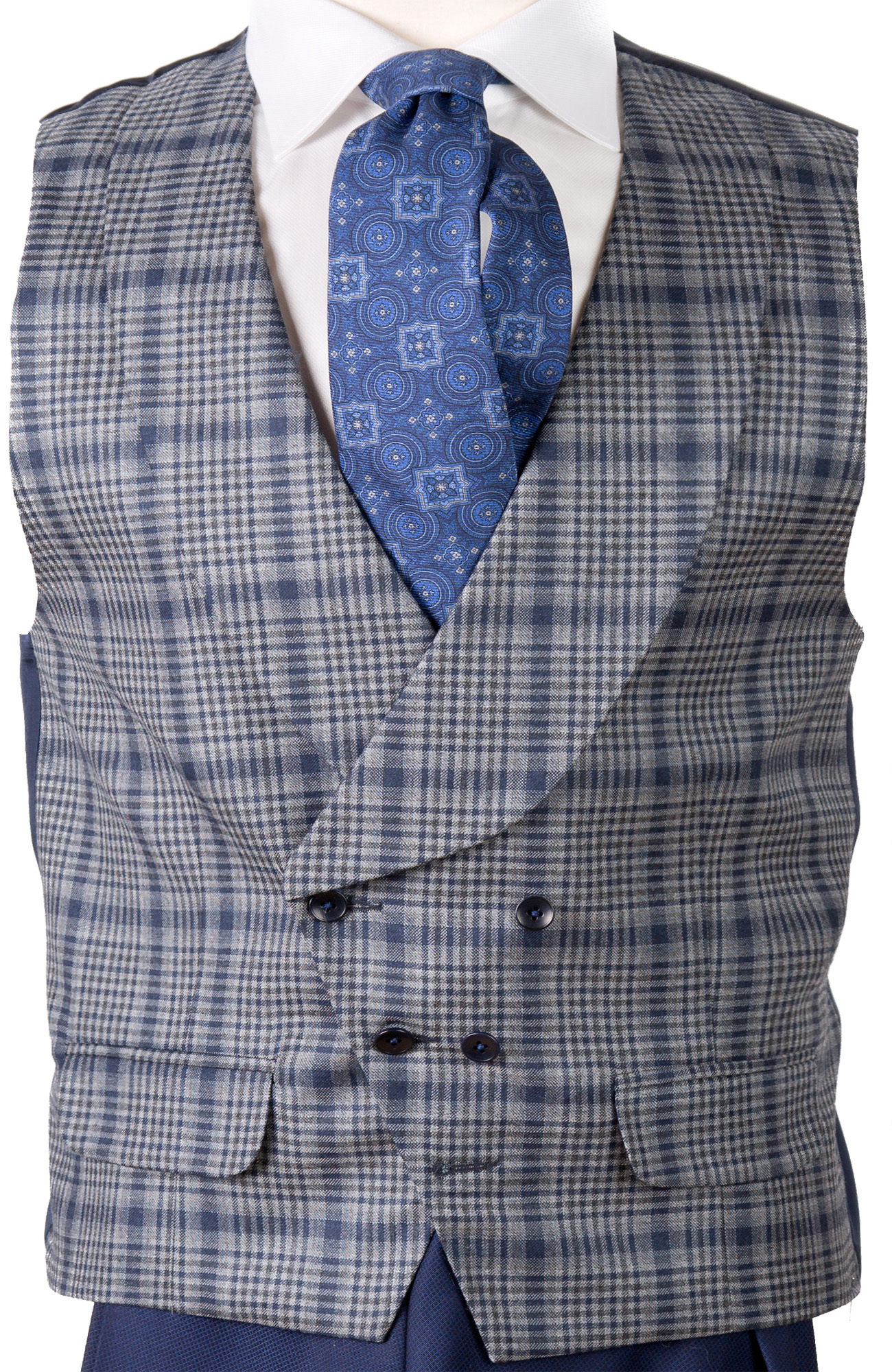 • Vestă bleumarin cu carouri și rever